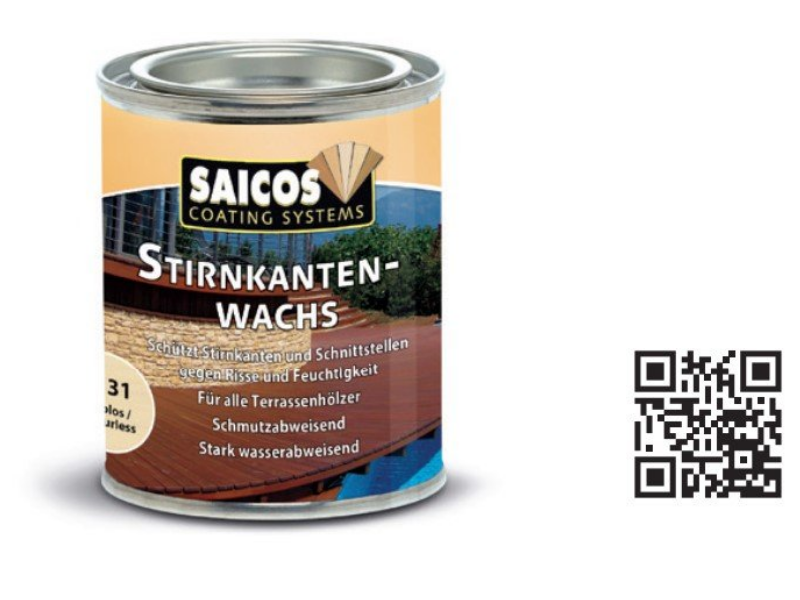 SAICOS Stirnkanten-Wachs служит для профилактики от растрескивания в торцах и предотвращает выделение древесных веществ. SAICOS Stirnkanten-Wachs защищает срезы и торцы от растрескивания и попадания влаги, обладает сильными грязе-и водоотталкивающими свойствами. SAICOS Stirnkanten-Wachs экологически безвредный (99 % биологически разлагаемый).